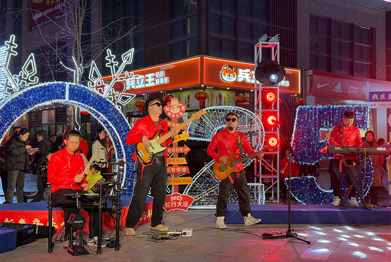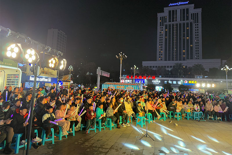 活动当晚,圣高广场人头攒动,热闹非凡,洋溢着一片欢乐的新春气息。伴随着现场观众热烈的欢呼,经典曲目《红日》《喜欢你》《我只在乎你》《海阔天空》《漂洋过海来看你》轮番上演。观众们或齐声合唱,或挥舞手中的荧光棒,沉浸在音乐的世界中。现场掌声与欢呼声此起彼伏,为寒冬注入了温暖与活力,更增添了新年的喜庆。