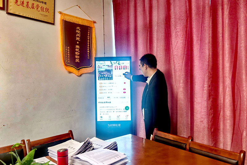 | 毛家镇交通村党委书记王佐洪展示“川善治”平台(闫凯 摄) |