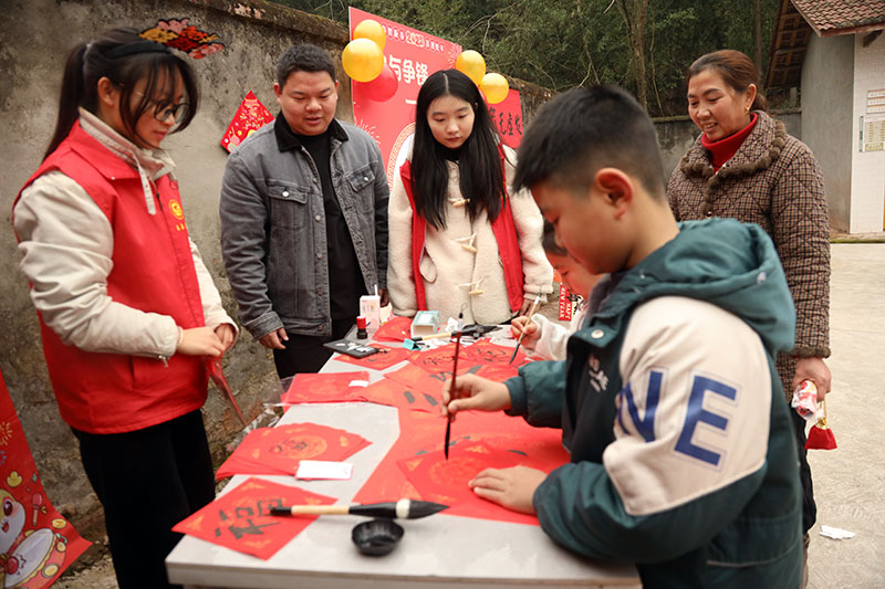 | “笔下生福”集章游戏展区(潘政吉 摄) |