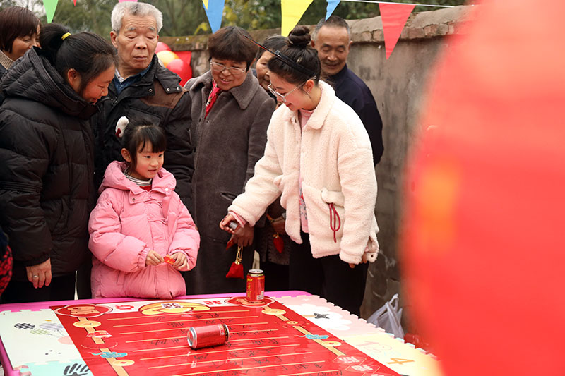 今年过年,什么最开心?资阳市安岳县毛家镇安潼村的村民们说:“领奖品、兑礼品、逛园景!”