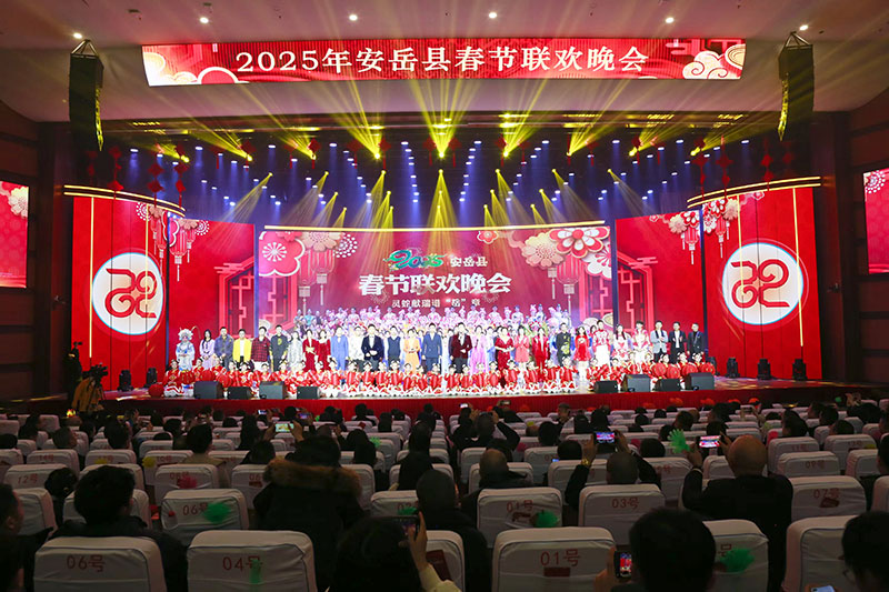 祥龙辞岁,灵蛇迎春。1月23日晚,2025年安岳县春节联欢晚会在县革命老区红色文化拓展交流中心热闹上演。晚会遵循春节喜庆、团圆、祈福的情感基调,以“灵蛇献瑞谱‘岳’章”为主题,融合安岳优秀地域特色文化,为全县人民奉上了一场丰盛的文化盛宴。