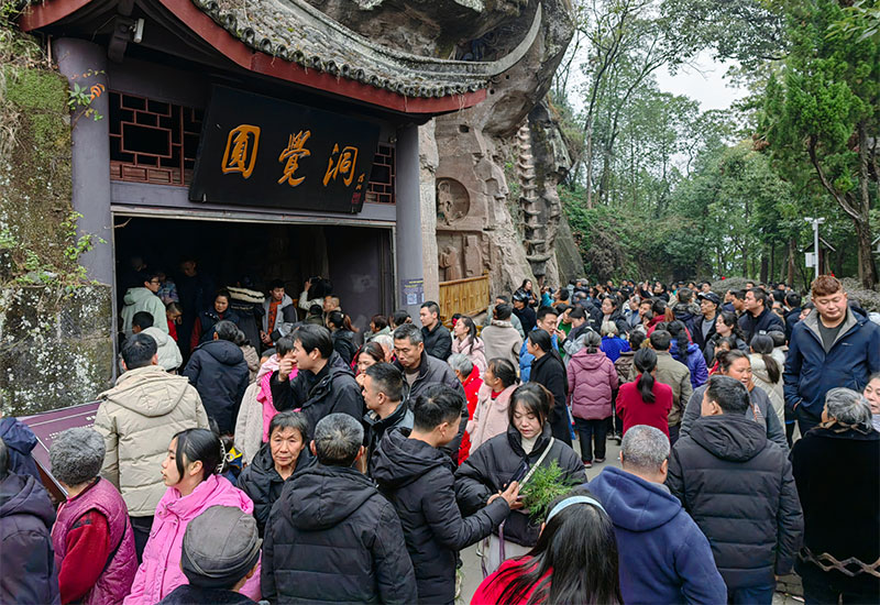 安岳国有石窟景区推出的免费开放政策,叠加游戏IP热度,彻底点燃游客热情:圆觉洞、卧佛院、毗卢洞、华严洞接待游客超30万人次,其中圆觉洞景区单日游客量突破3万人次,同比增长334.29%,创历史新高。