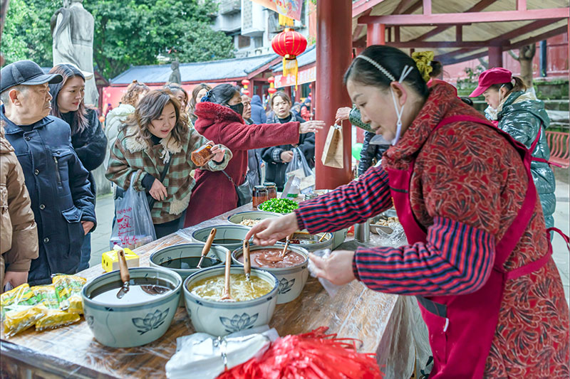 活动当天,朝晖园内人头攒动,非遗年货购物节吸引了众多市民驻足。安岳米卷、安岳粉条、安岳溏心皮蛋、安岳柠檬陈皮膏、周礼伤心凉粉、红妙子白酒等省市县的非遗项目悉数亮相。游客市民们不仅可以近距离欣赏非遗项目的精妙工艺,还能品尝到地道的安岳风味。